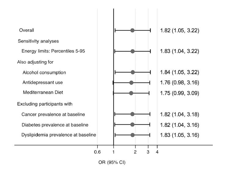 Fig. 1. Forest-plot on the positive effect of ultra-processed foods in the risk of telomere shortening, with appropriate adjustments. (Alonso-Pedrero et al., 2020)