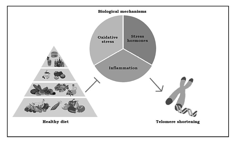Fig. 2. Outline of biological mechanisms involved in telomere length and influenced by diet (Galiè et al., 2019)