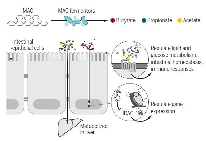 MACs, Microbiota-Accessible Carbohydrates, a diverse group of oligo- and polysaccharides, provide primary energy for gut bacteria. (3) Adequate intake of MACs–naturally contained in grains, legumes, vegetables, and fruits–thus enables maintenance of good microbial variability, with positive effects on health status. (4)