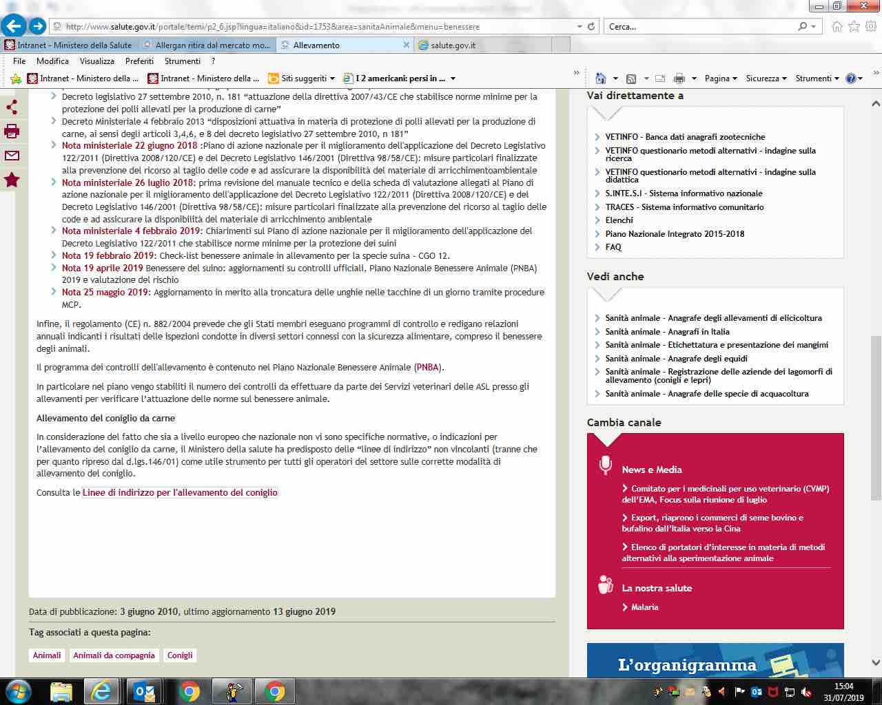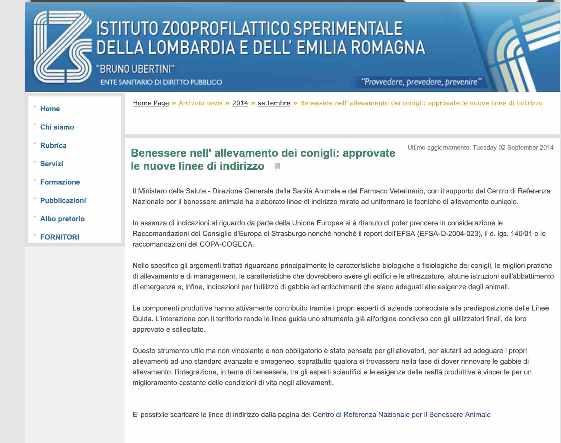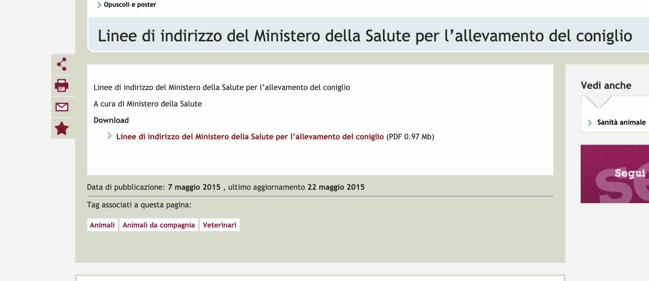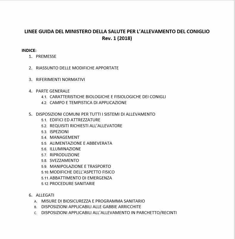 The Web offers more news than the ministry press office. The Ministerial (Voluntary) Guidelines-attached hereto-appear to be dated 2015. Thus, it was Beatrice Lorenzin, who led the department from 2013 to 2018 (under the Letta-Renzi-Gentiloni governments), who suggested that rabbits be let out of cages.