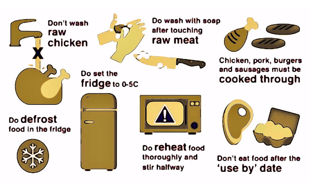 • non lavare la carne di pollo e di tacchino prima della cottura, per evitare di inquinare le superfici di lavoro,